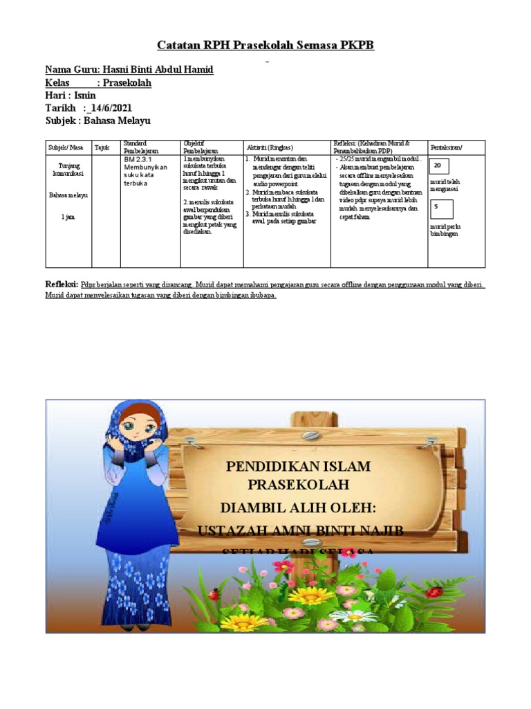 930 am 1000 am Number of children. Pengajaran dan Pembelajaran di Rumah PdPR ialah pengajaran dan pembelajaran PdP yang. RPH Prasekolah 2017.